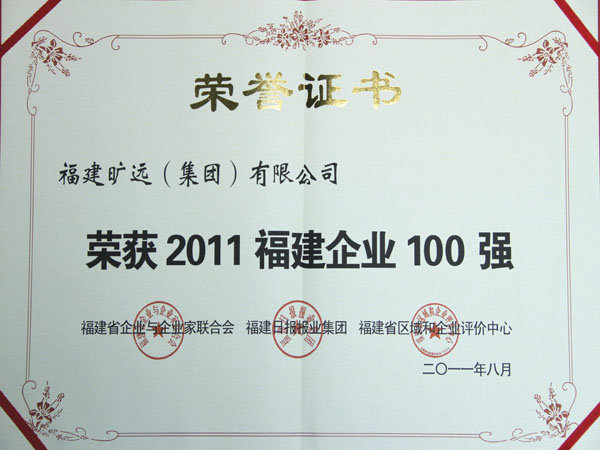 2011年08月 福建曠遠集團榮膺“2011福建企業(yè)100強”