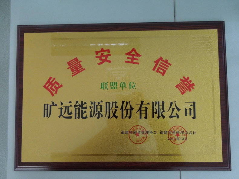 2013年12月 曠遠能源被福建省質量管理協(xié)會與福建省質量管理雜志社評為“質量安全信譽聯(lián)盟單位”