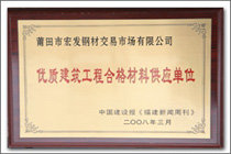 2005年04月 莆田市宏發(fā)鋼材交易市場有限公司被評為第三屆“全國誠信單位光榮榜”上榜榮譽單位