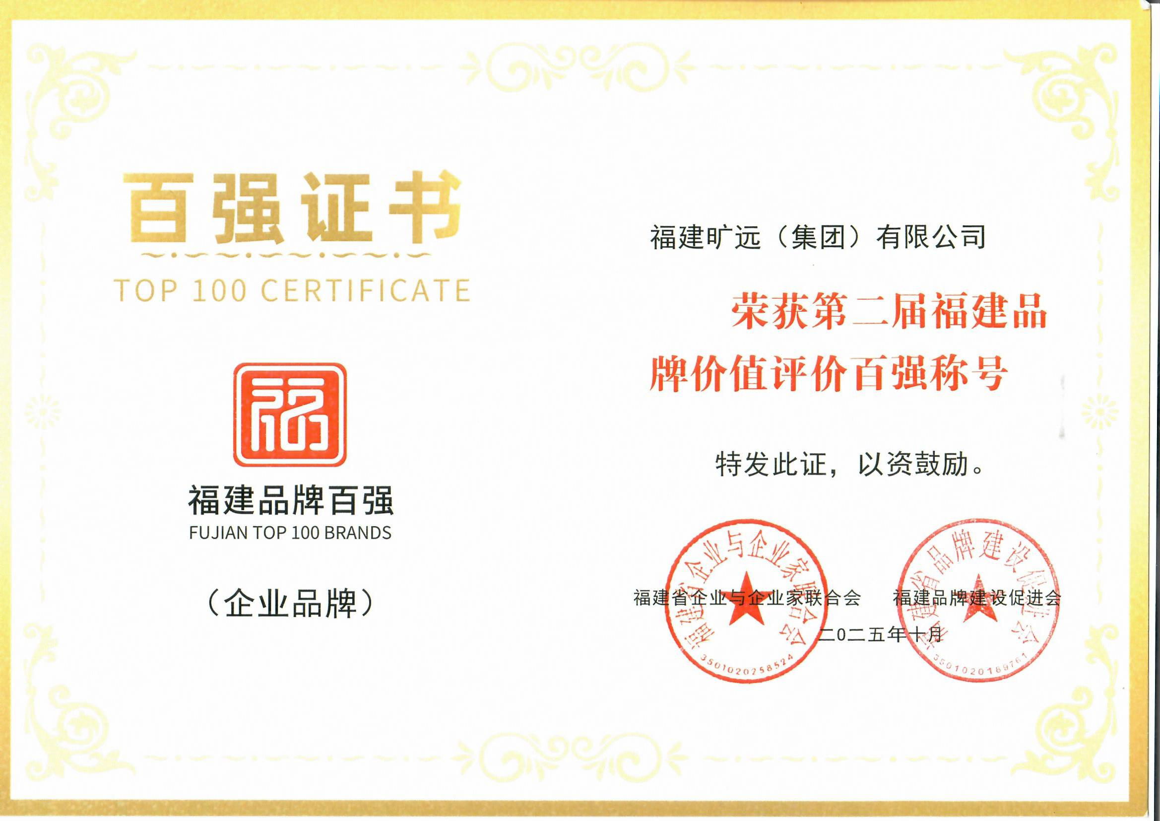 2025年10月 福建曠遠(yuǎn)(集團(tuán))有限公司榮獲“第二屆福建品牌價(jià)值評(píng)價(jià)百?gòu)?qiáng)”稱號(hào)第37位