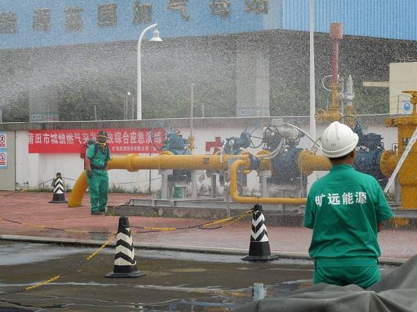當(dāng)天上午9時許,由演練總指揮副總裁黃劍鋒正式下達(dá)演練指令,演習(xí)的內(nèi)容為荔園站遭到恐怖襲擊,調(diào)壓站設(shè)備壓力表遭到破壞,出現(xiàn)泄漏,被荔園站保安和員工發(fā)現(xiàn)并及時控制,封鎖現(xiàn)場啟動應(yīng)急機(jī)制。隨后,場站人員及消防部門通過向泄漏處噴灑消防水降低現(xiàn)場天然氣濃度,搶險組到場后對受損管線進(jìn)行切換,保證天然氣正常供給,并更換受損儀表,上午10時順利搶修完畢并恢復(fù)使用。