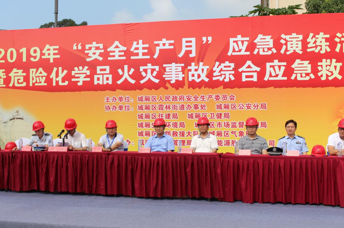 6月27日,城廂區(qū)2019年“安全生產(chǎn)月”應(yīng)急演練啟動(dòng)儀式暨危險(xiǎn)化學(xué)品火災(zāi)事故綜合應(yīng)急救援演練在曠遠(yuǎn)能源股份有限公司城廂氣化混氣灌瓶站(混氣站)開展。市應(yīng)急管理局陳金晃副局長、區(qū)委常委肖志雄常務(wù)副區(qū)長、區(qū)政府副區(qū)長陳國忠、曠遠(yuǎn)能源股份有限公司向榮副總裁出席啟動(dòng)儀式并現(xiàn)場觀摩指導(dǎo)。安委會(huì)成員單位分管領(lǐng)導(dǎo)和經(jīng)辦人員,鎮(zhèn)街道分管領(lǐng)導(dǎo)、安監(jiān)站全體干部,全區(qū)村(居)安全協(xié)管員共100多人現(xiàn)場觀摩。