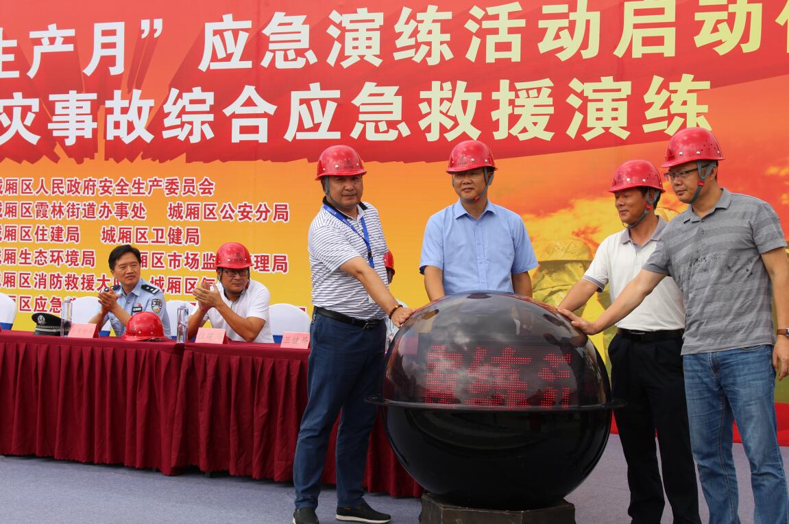 由陳金晃副局長、肖志雄常務(wù)副區(qū)長、陳國忠副區(qū)長、向榮副總裁共同按動(dòng)啟動(dòng)球開始本次演練。