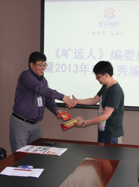 會(huì)議最后,針對(duì)在2013年度期刊建設(shè)中,表現(xiàn)較為突出的編委進(jìn)行了表彰。其中,來(lái)自曠遠(yuǎn)能源的謝力耘榮獲了“2013年度優(yōu)秀編委”稱號(hào),來(lái)自曠遠(yuǎn)房地產(chǎn)的曾明月榮獲了“2013年度企業(yè)活動(dòng)活躍分子”,副總裁姜升科先生分別為其頒發(fā)了證書(shū)及獎(jiǎng)金,并表示祝賀。