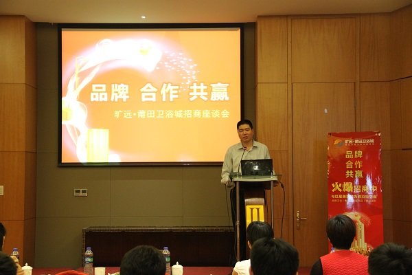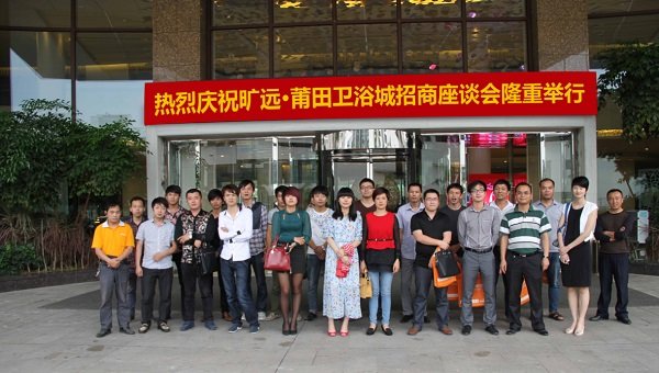 2014年5月8日,主題為“品牌·合作·共贏”的曠遠·莆田衛(wèi)浴城招商座談會在莆田曠遠錦江國際酒店二樓會議廳盛大召開。邀請了曠遠集團副總裁王光忠、曠遠·莆田衛(wèi)浴城項目已進場裝修商戶、高意向商戶、媒體記者等匯聚一堂。