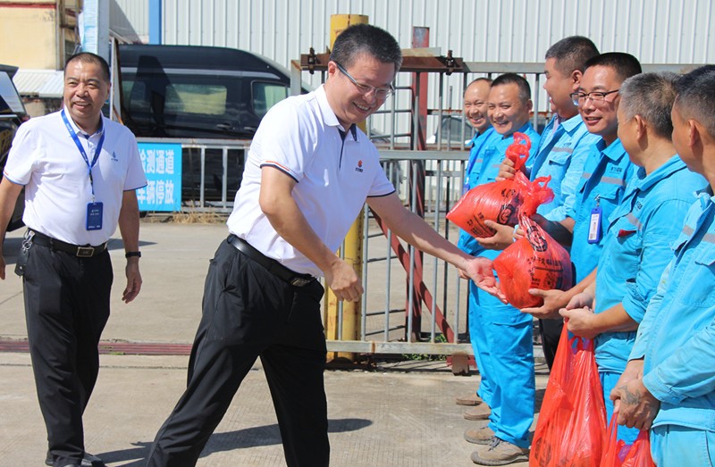 24日下午,曠遠(yuǎn)集團(tuán)工會(huì)主席王光忠親自帶隊(duì),聯(lián)合曠遠(yuǎn)能源工會(huì)主席曾智偉、曠遠(yuǎn)能源副總裁兼莆田燃?xì)馐聵I(yè)部總經(jīng)理柯軍、人力資源總監(jiān)兼總裁辦主任林玲玲等高層領(lǐng)導(dǎo),深入曠遠(yuǎn)能源作業(yè)現(xiàn)場(chǎng)開(kāi)展高溫慰問(wèn)活動(dòng),為奮戰(zhàn)在酷暑中的員工送去防暑降溫物資,傳遞集團(tuán)對(duì)一線員工的關(guān)懷與問(wèn)候。