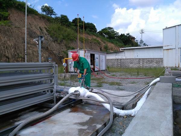 “安全責(zé)任重于泰山。忽視安全抓生產(chǎn)是火中取栗,脫離安全注求效益如水中撈月”。2016年6月21日9點(diǎn)30分左右,鯉南站值班人員在巡查時(shí)發(fā)現(xiàn),LNG槽車出液管連接氣化器進(jìn)液處法蘭墊片老化脆裂,產(chǎn)生大量LNG泄露,立即報(bào)告站長(zhǎng)林建峰,林建峰趕至現(xiàn)場(chǎng),判定需暫停LNG氣化供氣切換CNG供應(yīng)以保證城區(qū)安全供氣和場(chǎng)站安全后,立即組織值班人員按照操作要求關(guān)閉槽車出液閥門及氣化器進(jìn)液管閥門,并實(shí)施LNG/CNG切換,用CNG進(jìn)行供氣。待LNG出液管段內(nèi)LNG充分放散,管內(nèi)無(wú)壓力,出液軟管溫度升至常溫后,周圍環(huán)境可燃?xì)怏w檢測(cè)符合要求后進(jìn)行搶修。由應(yīng)急總指揮安全運(yùn)營(yíng)部經(jīng)理張躍章檢查搶修情況,確認(rèn)完好,現(xiàn)場(chǎng)指揮下達(dá)恢復(fù)通氣指令。