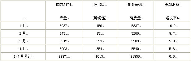 表1 2011年1-4月國內(nèi)粗鋼新增資源變化情況