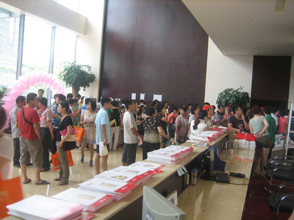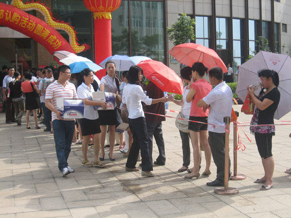 本報(bào)記者了解到,參與本次住宅內(nèi)部認(rèn)購(gòu)活動(dòng)的人們異常踴躍??礈?zhǔn)樓盤(pán)區(qū)位優(yōu)勢(shì)的市民,在24號(hào)下午便早早地在售樓處門(mén)口為明天的認(rèn)購(gòu)活動(dòng)排隊(duì)等待領(lǐng)號(hào),截至晚上24時(shí),排隊(duì)等待認(rèn)購(gòu)的人數(shù)竟已超過(guò)60人,令工作人員震驚不已。當(dāng)?shù)诙焓蹣翘庨_(kāi)放時(shí),入口大門(mén)已被熱心的購(gòu)房者團(tuán)團(tuán)包圍,超過(guò)200的購(gòu)房者焦急地等待著領(lǐng)取自己的購(gòu)房號(hào)碼。對(duì)此,開(kāi)發(fā)商高度重視,除了出動(dòng)企業(yè)內(nèi)部的安保人員外還請(qǐng)外部保安協(xié)助維持現(xiàn)場(chǎng)秩序,防止意外事故的發(fā)生。當(dāng)購(gòu)房號(hào)發(fā)放后,不少進(jìn)入售樓處的認(rèn)購(gòu)市民,幾欲沖破安保人員的引導(dǎo),想盡快選購(gòu)自己的稱(chēng)心好房,但在現(xiàn)場(chǎng)工作人員的悉心引導(dǎo)下,本次認(rèn)購(gòu)活動(dòng)最終圓滿、有序、火爆地完成,取得了曠遠(yuǎn)地產(chǎn)的開(kāi)門(mén)紅。