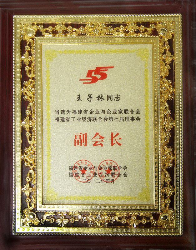 王子林董事長當(dāng)選為福建省企業(yè)與企業(yè)家聯(lián)合會福建省工業(yè)經(jīng)濟聯(lián)合會第七屆理事會副會長