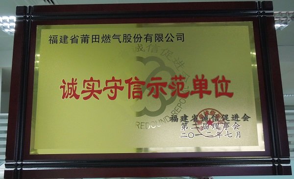 - 莆田燃?xì)猥@“守合同重信用企業(yè)”稱號