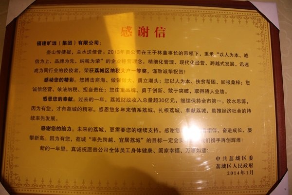 - 曠遠(yuǎn)集團(tuán)榮獲莆田市“2014年度納稅大戶”稱號