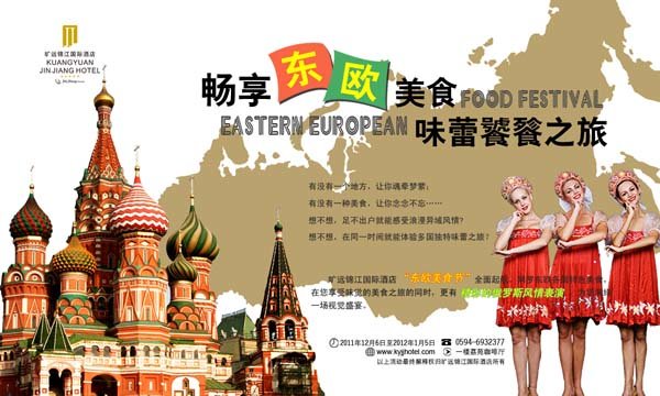 為回饋廣大新老客戶,展現(xiàn)莆田多元的飲食文化,曠遠(yuǎn)錦江國際酒店將于12月6日之起舉行“暢享東歐美食,味蕾饕餮之旅”——“東歐美食節(jié)”活動(dòng)。