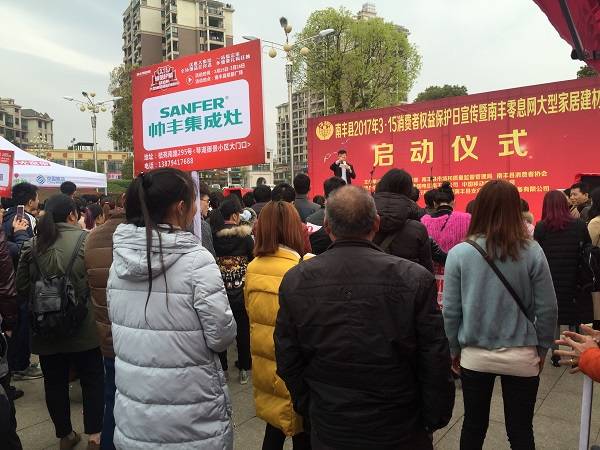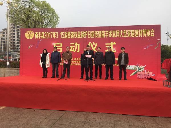 3月15日上午,南豐縣2017年“3.15消費者權(quán)益者保護(hù)日”宣傳活動暨南豐零息網(wǎng)大型家居建材博覽會啟動儀式在桔都廣場順利舉辦。南豐縣委宣傳部副部長羅健、縣市場和質(zhì)量監(jiān)督管理局局長胡義華、縣消費者協(xié)會會長、副會長、各常務(wù)理事單位及主要負(fù)責(zé)人出席啟動儀式并發(fā)表講話,南豐縣煙草公司、中國移動通信、中國電信集團(tuán)、中國郵政儲蓄銀行及南豐曠遠(yuǎn)能源等多家單位參加該活動。