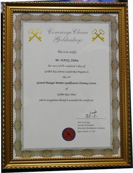 為進(jìn)一步提升酒店的服務(wù)意識(shí)和服務(wù)品質(zhì),曠遠(yuǎn)錦江國際酒店總經(jīng)理王之斌先生參加了2017年3月第十九期金鑰匙總經(jīng)理會(huì)員培訓(xùn),經(jīng)過層層考驗(yàn),最終順利通過考核,3月11日,他獲得了由主席孫東先生頒發(fā)的金鑰匙總經(jīng)理榮譽(yù)證書。