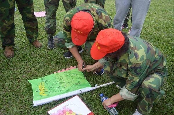 五月的陽光雖已釋放出它火熱的激情,但高溫的天氣卻影響不了曠遠(yuǎn)人的熱情。在教練明確了訓(xùn)練營營規(guī)后,伙伴們紛紛換上了英姿颯爽的迷彩服開啟了他們的拓展之旅。教練首先將全體人員隨機(jī)分成了4個小組,隨后開展了團(tuán)隊建設(shè),每個小組選舉出正副隊長并由隊長帶領(lǐng)組建隊名、隊呼、隊標(biāo)、隊歌以及logo等,各“戰(zhàn)斗小組”已然準(zhǔn)備好進(jìn)入“戰(zhàn)斗”狀態(tài)。