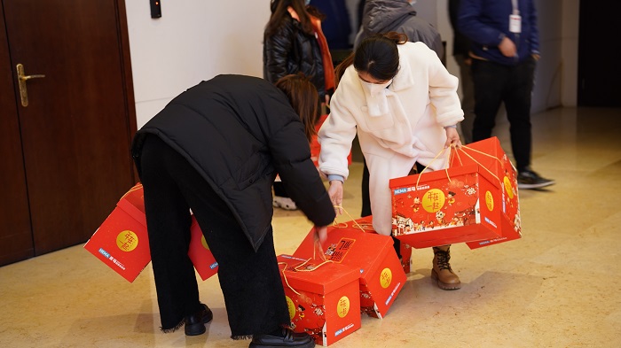 在所有年貨到位之后,各公司員工來到一樓大廳,滿懷激動的心情領(lǐng)取年貨。“快快快,點(diǎn)一下。”“你幫忙多拿幾個,一起上去!”“這個不錯,我喜歡吃?!蹦曦洶l(fā)放現(xiàn)場氣氛熱烈,大家提著沉甸甸的年貨,臉上洋溢著笑容,新春佳節(jié)的喜悅已縈繞在公司內(nèi)外。