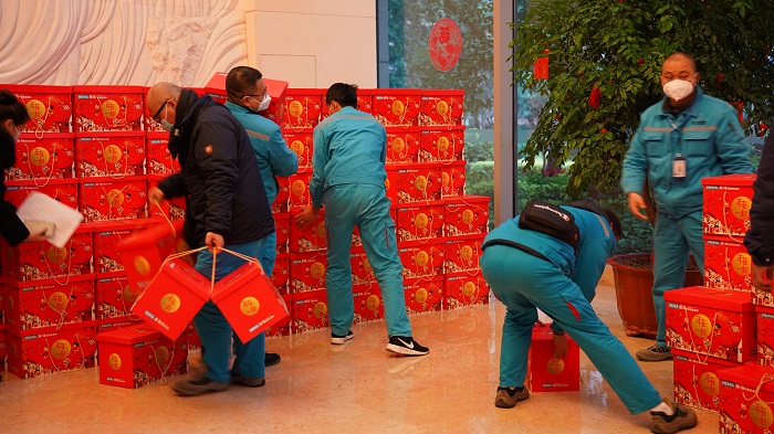 兔年將至,備年禮、囤年貨都是必不可少的儀式。一件件代表著公司關(guān)懷的年貨堆成一座座小山,承載了公司對每一位員工真摯的問候與祝福,紅色的包裝更為發(fā)年貨現(xiàn)場增添了喜慶、熱鬧的氛圍感。