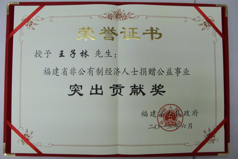 2013年06月 王子林董事長榮獲“福建省非公有制經濟人士捐贈公益事業(yè)突出貢獻獎”