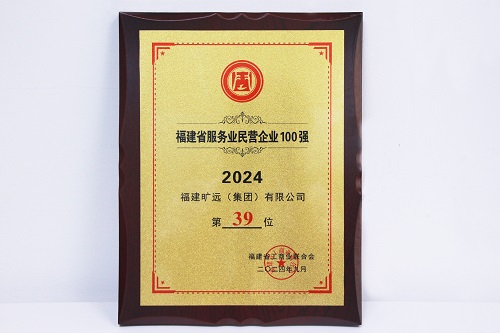 2024年09月 福建曠遠(集團)有限公司榮登“福建省服務業(yè)民營企業(yè)100強”榜單第39位、榮獲“福建省民營企業(yè)責任100佳”稱號