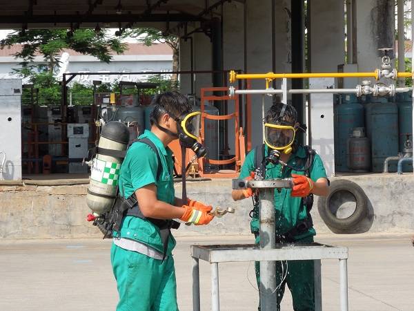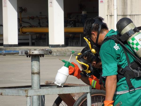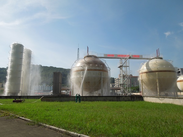 本次演練項(xiàng)目為:LPG1#儲(chǔ)罐底部出口閥被恐怖分子破壞造成液化石油氣泄漏事故的應(yīng)急處置。主要流程為:模擬事故發(fā)生、制服歹徒、報(bào)警、應(yīng)急啟動(dòng)、人員疏散、安全警戒、消防噴淋驅(qū)散稀釋燃?xì)鉂舛取岆U(xiǎn)堵漏及最終解除警戒等。在總指揮的領(lǐng)導(dǎo)下,所有參演人員嚴(yán)肅認(rèn)真、有條不紊地進(jìn)行各個(gè)演練步驟,歷時(shí)一個(gè)小時(shí)后,演練圓滿結(jié)束。