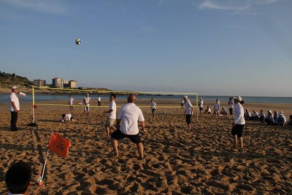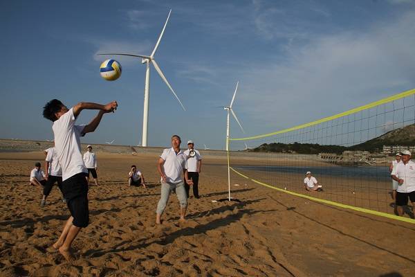 作為當(dāng)天活動(dòng)的第三個(gè)項(xiàng)目,“大自然的搬運(yùn)工”在下午14:00隆重登場(chǎng),該項(xiàng)目考驗(yàn)的是各成員之間相互協(xié)作和團(tuán)隊(duì)分工能力。在烈日照射的沙灘上,每隊(duì)隊(duì)伍起點(diǎn)的成員奮力奔跑,只為爭(zhēng)分奪秒多取一杯水,而其他隊(duì)員則迅速地接過一杯杯水,團(tuán)隊(duì)協(xié)作的精神在烈日下顯得耀眼奪目,最終,蛟龍隊(duì)獲得該項(xiàng)目的冠軍。休息片刻后,“沙灘排球賽”隨即登場(chǎng),在兩兩對(duì)決的過程中,比拼看點(diǎn)十足,比分步步緊逼,最后,風(fēng)車隊(duì)取得了該項(xiàng)目的勝利。