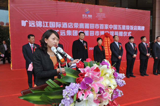 莆田市副市長張麗冰代表市政府接受曠遠(yuǎn)集團(tuán)的捐贈(zèng)
