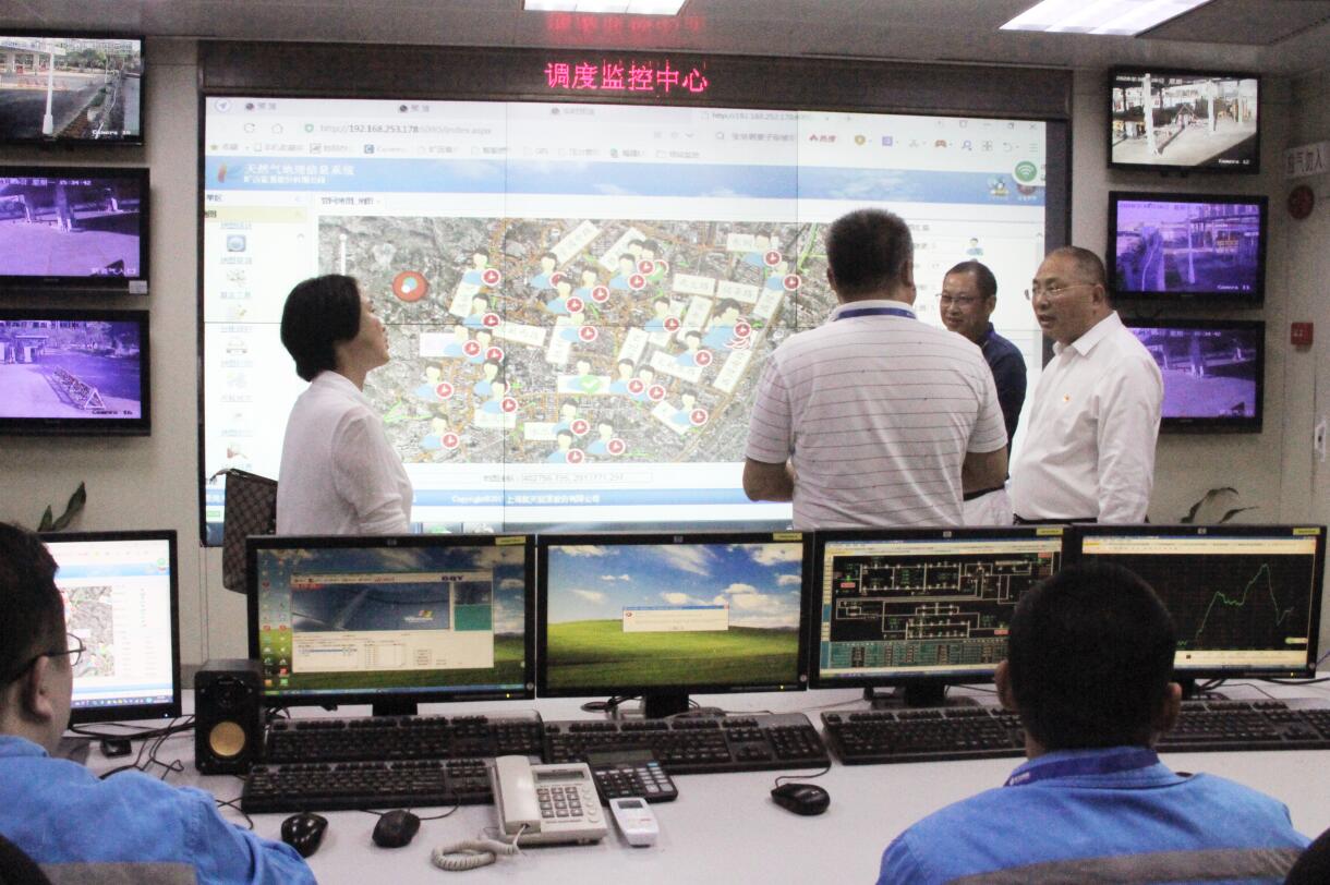 陳志強(qiáng)副市長一行參觀了曠遠(yuǎn)能源調(diào)度監(jiān)控中心,并現(xiàn)場聽取了能源總裁向榮匯報我司關(guān)于燃?xì)獍踩\(yùn)營、掃黑除惡專項(xiàng)斗爭等工作情況后,給予充分肯定,同時提出要進(jìn)一步落實(shí)燃?xì)馄髽I(yè)主體責(zé)任,規(guī)范合法經(jīng)營;加強(qiáng)與政府部門的配合協(xié)作,保持信息互通共享;嚴(yán)格按照掃黑除惡專項(xiàng)斗爭工作要求,共同營造“有黑掃黑”的“掃黑除惡”濃厚氛圍。
