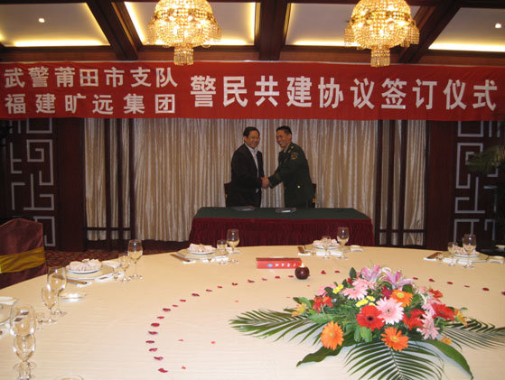 為了促進(jìn)我市三個(gè)文明建設(shè)和社會(huì)和諧穩(wěn)步發(fā)展,進(jìn)一步加大警民共建力度,切實(shí)將雙擁工作落到實(shí)處,福建曠遠(yuǎn)集團(tuán)與武警福建部隊(duì)莆田支隊(duì)決定開展共建合作,并成立了共建活動(dòng)領(lǐng)導(dǎo)小組。