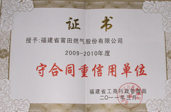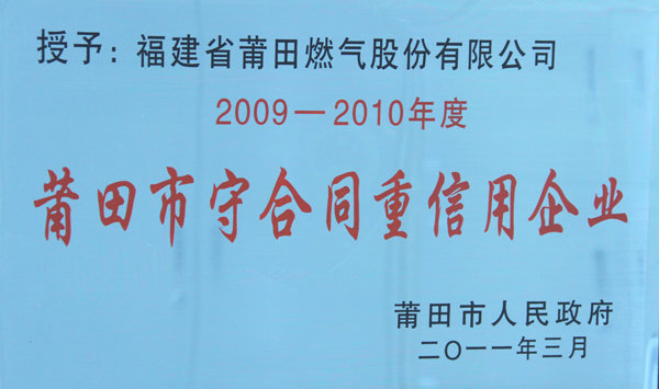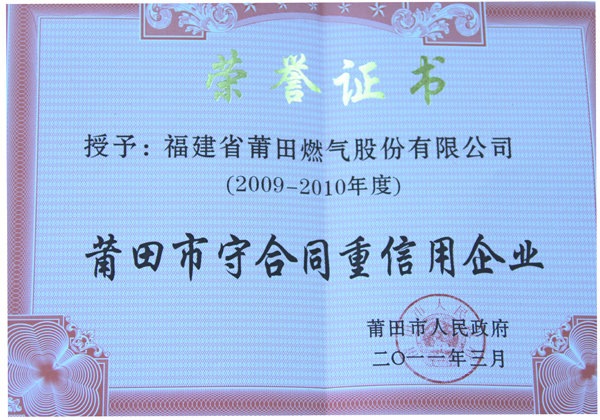 - 莆田燃氣獲“2010-2011年度納稅信用A級納稅人”稱號