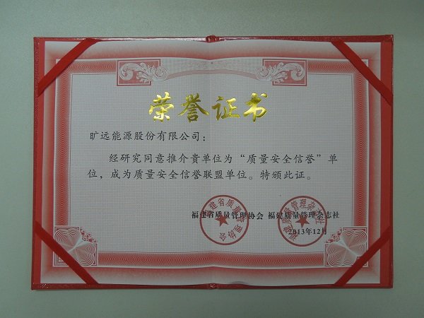 - 曠遠(yuǎn)能源獲評莆田市2012-2013年度“納稅信用A級納稅人”