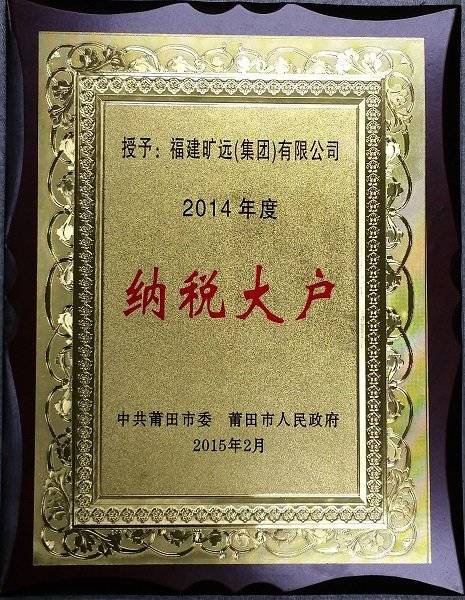 曠遠集團榮獲莆田市“2014年度納稅大戶”稱號