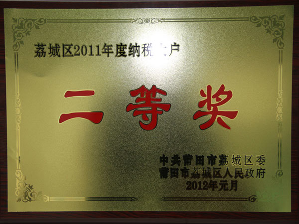 2011年元月,企業(yè)被中共莆田市荔城區(qū)委和莆田市荔城區(qū)人民政府聯(lián)合授予“荔城區(qū)2011年度納稅大戶二等獎”稱號!