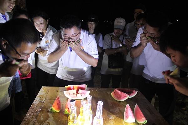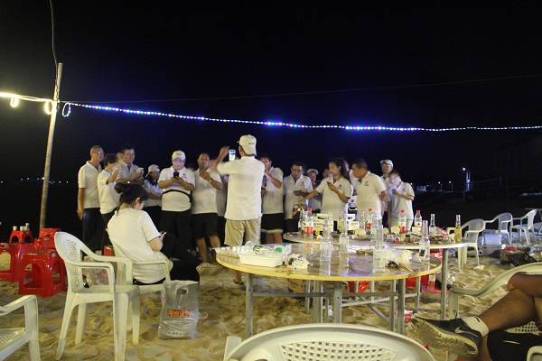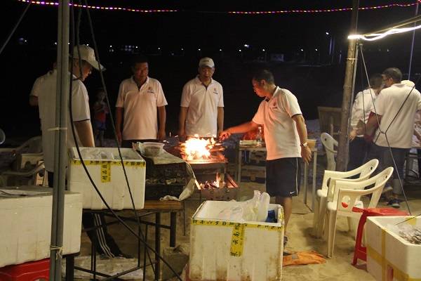 滑沙比賽結(jié)束后,所有成員欣賞著海邊的日落與晚霞,并開始著手生火、備材,準(zhǔn)備晚餐。其中,海神隊在生火項目中以明顯的優(yōu)勢,快于其他隊伍首先烤起了食材。每隊隊員們一邊動手燒烤,一邊準(zhǔn)備食材,場面好不熱鬧。期間,開懷暢飲、誰是大胃王等趣味比拼,為晚餐增添了諸多歡笑。在合唱的歌聲中,當(dāng)天活動圓滿結(jié)束。