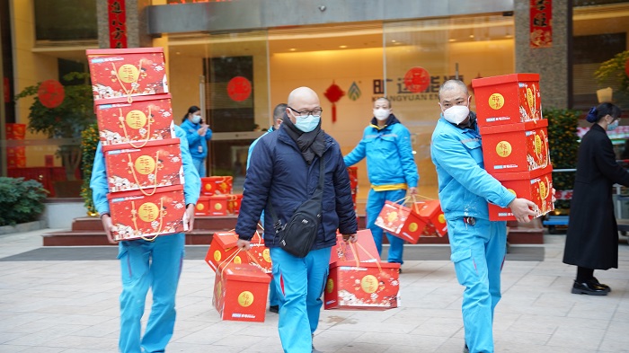 在所有年貨到位之后,各公司員工來到一樓大廳,滿懷激動的心情領(lǐng)取年貨。“快快快,點(diǎn)一下。”“你幫忙多拿幾個,一起上去!”“這個不錯,我喜歡吃?!蹦曦洶l(fā)放現(xiàn)場氣氛熱烈,大家提著沉甸甸的年貨,臉上洋溢著笑容,新春佳節(jié)的喜悅已縈繞在公司內(nèi)外。